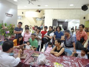 臺中市立大墩文化中心自8月18日起到9月5日止,在大墩文化中心文物陳列室(一)(二)展出「獅情畫意-2012李金生陶藝展」。8月28日上午11點於文物陳列室,李金生老師現場示範製作陶土人偶,和參觀民眾互動,笑聲連連。