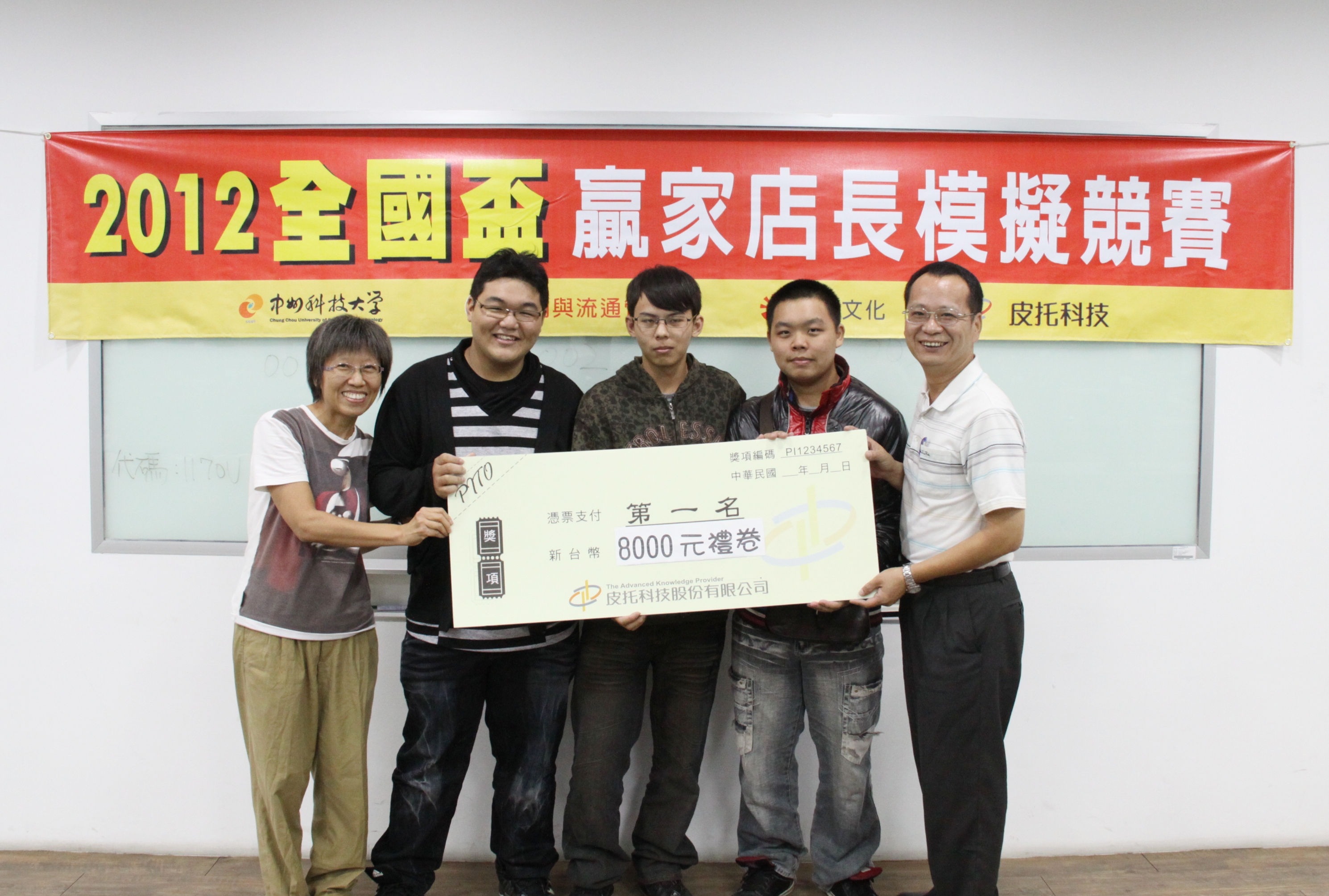 由中州科技大學行銷與流通管理系主辦的「2012全國盃贏家店長模擬競賽」,皮托科技股份有限公司、前程文化股份有限公司協辦,20日在中州科技大學舉行,共有來自全國26組隊伍參賽,經過兩回合競賽,最後由南開科技大學『美夢成真』...(詳全文) |