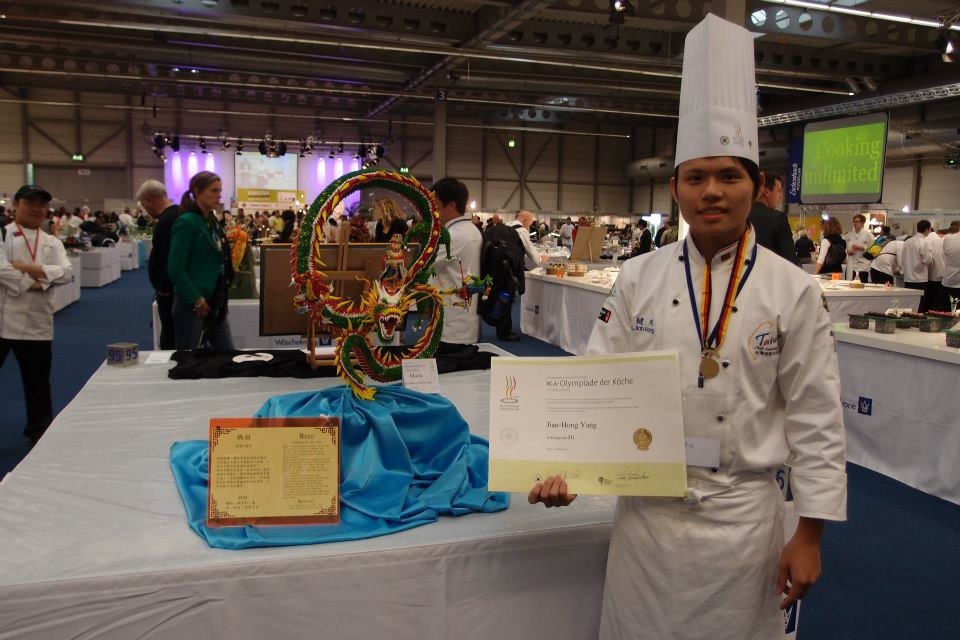 正在德國舉行的奧林匹克國際廚藝大賽(IKA Olympics)中,明道大學餐旅管理學系學生楊鍵鴻的作品「媽祖」、黃汶達老師的作品「神話」,勇奪藝術類烘焙組金、銀牌。