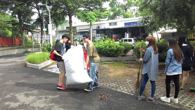 登革熱疫情持續延燒,全台拉警報,嶺東科大9日開學,上課前,師生總動員,全校大掃除,徹底消滅病媒蚊。