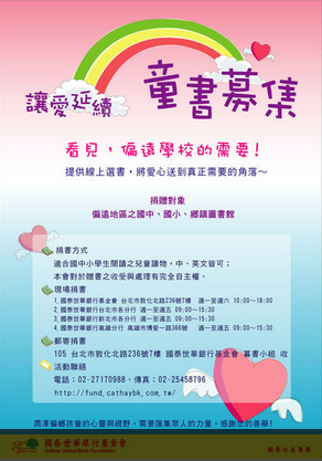 為關懷弱勢及偏遠國中小學生,讓正值培養閱讀能力關鍵時期的學生們,也能浸潤在書香中,滿足他們對知識的渴望,希望透過舉辦募書活動,賦予二手書籍有更深的意義,也將大眾的愛心一直延續下去~