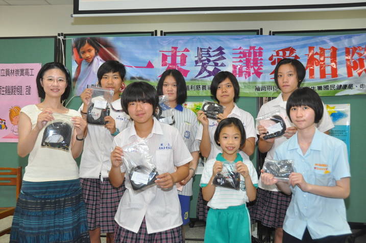 由切膚之愛基金會所主辦的「崇實師生一束髮讓愛相隨」活動, (2)日在設計師的巧手下,國立員林崇實高工十位師生,捐出她們最寶貝的頭髮,讓留有一頭烏黑亮麗秀髮的師生們,也傳遞了對癌友最真摯的愛。