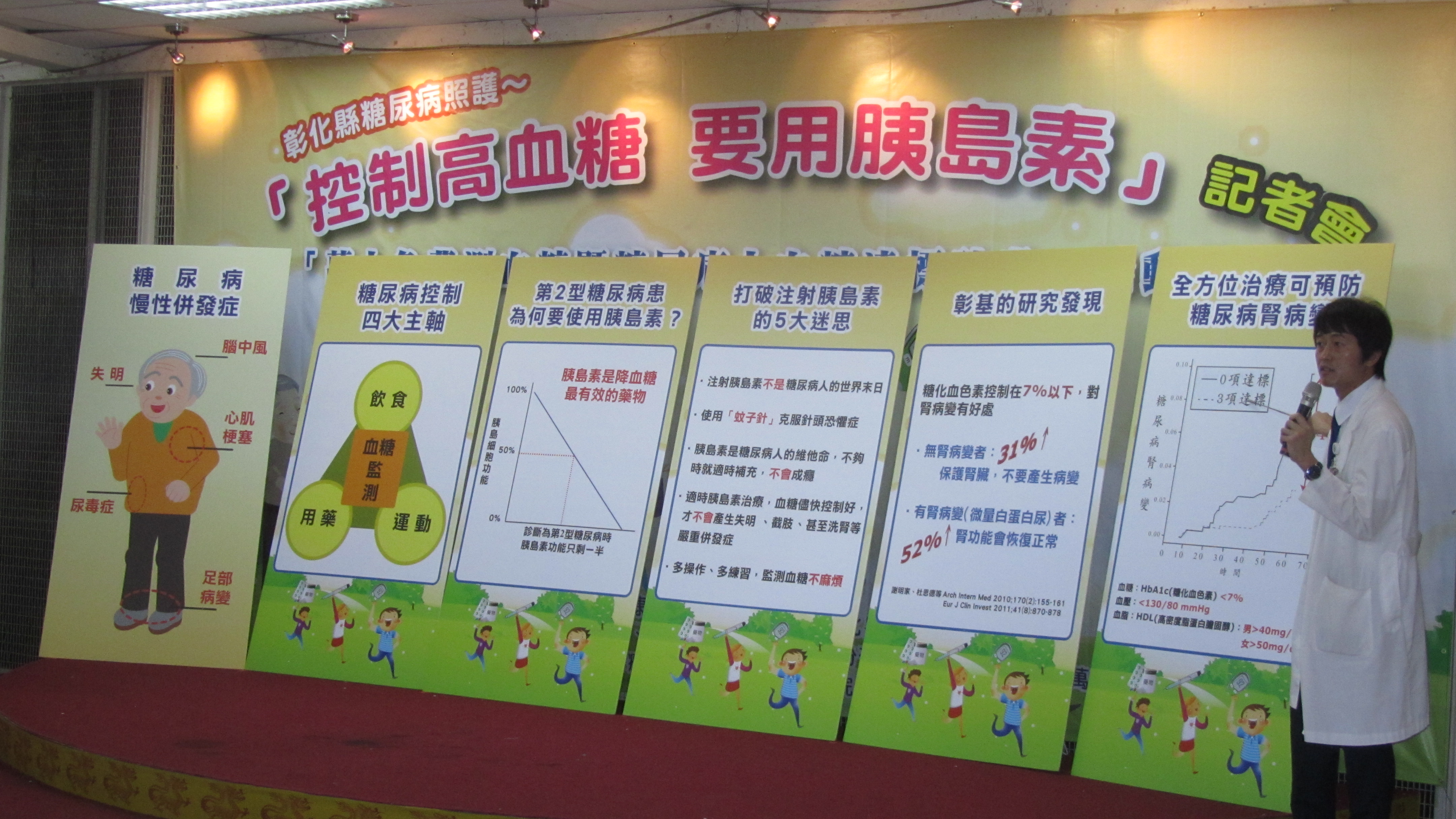 台灣糖尿病人口超過130萬,部份糖尿病患以為注射胰島素控制病情,等於是沒藥醫,這是錯誤的觀念。(5)日在彰化縣政府舉行「控制高血糖․要用胰島素」記者會,縣長卓伯源、中華民國糖尿病學會江怡德秘書長、美商亞培股份有限公司台灣...(詳全文) |