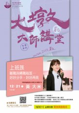 年關將至,上班族開始蠢蠢欲動,轉職潮蓄勢待發,大墩大師講堂歲末講座,特別為苦於找工作或有轉職念頭的您,邀請來職場作家黃大米,為大家敲開求職轉職契機。